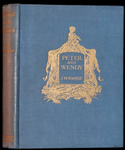 The book: Rare and attractive "blue" edition of Peter Pan; or, the Boy Who Wouldn't Grow Up or Peter and Wendy is J. M. Barrie's most famous work, in the form of a 1904 play and a 1911 novel. Both versions tell Peter Pan, a mischievous little boy who can fly, and his adventures on the island of Neverland with Wendy Darling and her brothers, the fairy Tinker Bell, the Lost Boys, the Indian princess Tiger Lily, and the pirate Captain Hook. Barrie's friendship inspired the play and novel with the Llewelyn Davies family. Barrie continued to revise the play for years after its debut; the novel reflects one version of the story. A rare find in any condition!