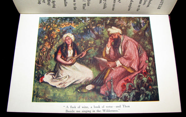 The book : Rare and Nice edition of Alice Ross' illustrations for the Rubaiyat of Omar Khayyám --Edward FitzGerald 's translation of a selection of poems, originally written in Persian and numbering about a thousand, attributed to Omar Khayyám (1048–1131), a Persian poet, mathematician and astronomer. A ruba'i is a two-line stanza with two parts (or hemistichs) per line, hence the word rubayot (derived from the Arabic language root for "four"), meaning "quatrains".