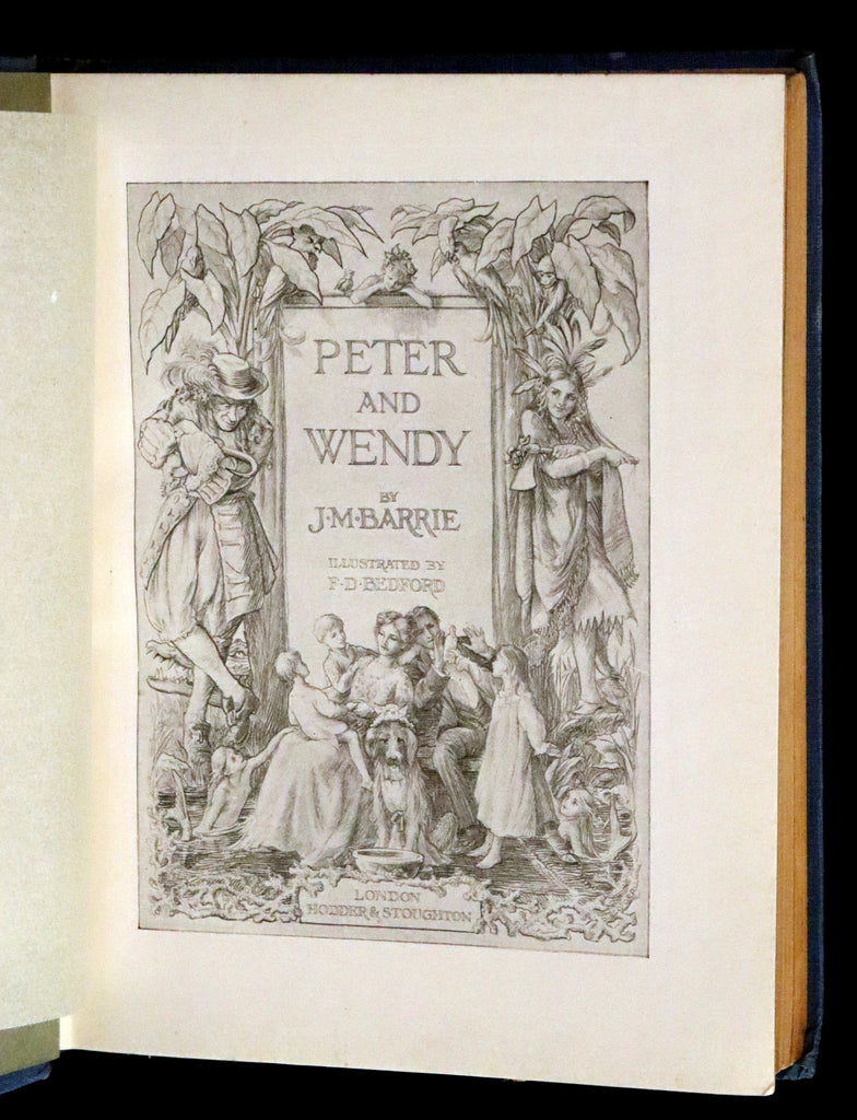 1911 Scarce PETER PAN Edition - Peter and Wendy by J.M. Barrie illustrated by F.D. Bedford with Tipped-in Color Frontispiece.
