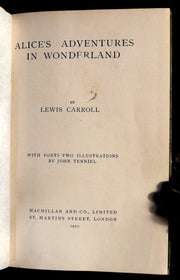 1912 Rare Book - Alice's Adventures in Wonderland by Lewis Carroll illustrated by John Tenniel.