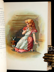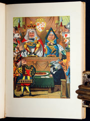 Binding: Attractive and very good publisher’s original tan cloth binding, spine titled in black with decorative bands. The front cover features a vibrant full-color pictorial onlay showing Alice and the Queen of Hearts in the garden scene (hinges fine, overall slightly worn and scuffed - as shown) under a protective removable mylar cover. A rare find in any condition!