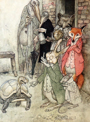 The illustrator: Arthur Rackham (1867–1939) was one of the defining illustrators of the Golden Age of British book illustration. Renowned for his expressive line work, imaginative compositions, and subtle use of color, Rackham brought a distinctive psychological depth to traditional stories. His illustrations for Æsop’s Fables are among his most sophisticated, blending humor, menace, and humanity in a way that has secured this volume’s lasting reputation as a masterpiece of illustrated book art.