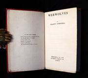 The book: Attractive First Edition of this classic mythology anthology regarding werewolves. There is scarcely a country in the world in which belief in a werwolf, or in some other form of lycanthropy, has not once existed, though it may have ceased to exist now. But whereas in some countries the werwolf is considered wholly physical, in others it is looked upon as partly, if not entirely, superphysical. And whilst in some countries, it is restricted to the male sex, in others it is confined to the female; and, again, in others, it is to be met within both sexes.A werewolf is a mythological or folkloric human with the ability to shapeshift into a wolf (or, especially in modern film, a therianthropic hybrid wolflike creature), either purposely or after being placed under a curse or affliction (often a bite or scratch from another werewolf). Early sources for belief in this ability or affliction, called lycanthropy are Petronius (27–66) and Gervase of Tilbury (1150–1228). The werewolf is a widespread concept in European folklore, existing in many variants, which are related by a common development of a Christian interpretation of underlying European folklore developed during the medieval period.