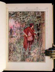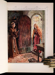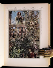 The book: Shakespeare's Tragedy of Romeo and Juliet, illustrated by William Hatherell, is a scarce first edition published in 1912 by Hodder & Stoughton. This edition is celebrated for its artistic contributions to one of Shakespeare's most beloved tragedies, featuring 22 color plates by Hatherell, whose work captures the emotion and drama of the play. The illustrations, each protected by a printed paper guard and beautifully integrated into the book, elevate the reading experience, providing a visual narrative that complements Shakespeare's text. The attractive gilt-decorated full-cloth binding and the careful preservation of the book make it a sought-after collector's item for enthusiasts of Shakespeare, illustrated books, and early 20th-century editions.