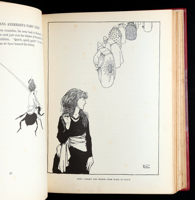 The illustrator: W. Heath Robinson (1872–1944) was a British artist and illustrator best known for his fantastical drawings of elaborate contraptions. A master of both humor and fairy-tale romanticism, Robinson’s illustrations for Andersen reflect a gentler side of his talent—filled with grace, fine linework, and richly imaginative scenes that elevate the stories’ magical worlds. His work in this edition is widely considered among his finest contributions to children’s literature.