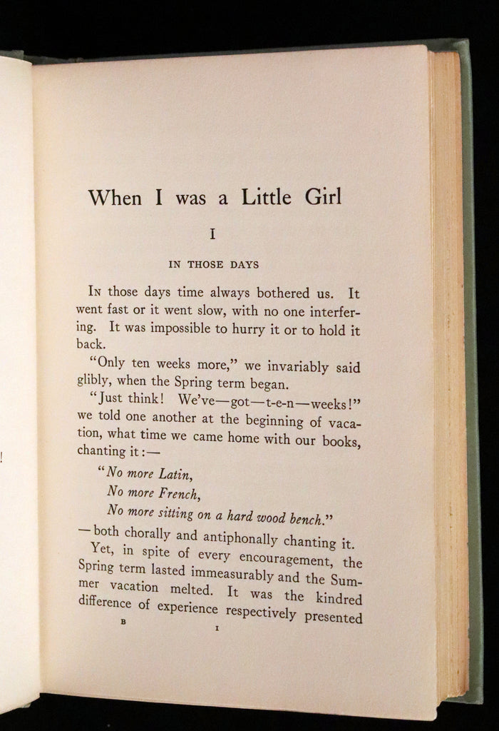 The book: A nice first edition, first printing of "When I Was A Little Girl" by Zona Gale, published in 1913 by The Macmillan Company, New York. This edition is noteworthy for its inclusion of illustrations by Agnes Pelton, which add a unique visual dimension to Gale's narrative.