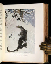 The book Rare First UK illustrated Bransom edition of The Wind in the Willows -- a children's book by Scottish novelist Kenneth Grahame, first published in 1908. Alternatingly slow-moving and fast-paced, it focuses on four anthropomorphized animals: Mole, Rat (a European water vole), Toad, and Badger. They live in a pastoral version of Edwardian England. In 1908 Grahame retired from his position as secretary of the Bank of England. He moved back to Berkshire, where he had lived as a child, and spent his time by the River Thames, doing much as the animal characters in his book do – to quote, "simply messing about in boats" – and expanding the bedtime stories he had earlier told his son Alastair into a manuscript for the book.
