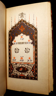 The book: Very nice edition of Costello's Rose Garden of Persia (1887) which contains versions of poems or poem extracts taken from Persian, illustrated with imitations of Persian illuminations. There were reissues in 1888, 1899 and 1913.