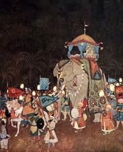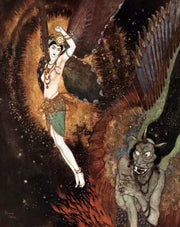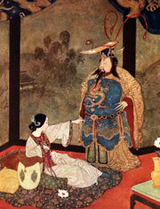 The illustrator: Edmund Dulac (born Edmond Dulac; October 22, 1882 – May 25, 1953) was a French-born, British naturalized magazine illustrator, book illustrator and stamp designer. Born in Toulouse he studied law but later turned to the study of art the École des Beaux-Arts. He moved to London early in the 20th century and in 1905 received his first commission to illustrate the novels of the Brontë Sisters. During World War I, Dulac produced relief books and when after the war the deluxe children's book market shrank he turned to magazine illustrations among other ventures. He designed banknotes during World War II and postage stamps, most notably those that heralded the beginning of Queen Elizabeth II's reign.