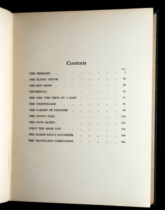 The book: A visually enchanting early 20th-century edition of Andersen’s timeless fairy tales, beautifully brought to life, for the first time, by the dreamlike and fantastical illustrations of Dugald Stewart Walker. The collection includes such beloved tales as The Little Mermaid, The Snow Queen, The Red Shoes, Thumbelisa, and The Nightingale, along with several lesser-known stories. Published by Harrap in a format designed to delight both children and adult collectors, this edition reflects the peak of the Golden Age of Illustration.