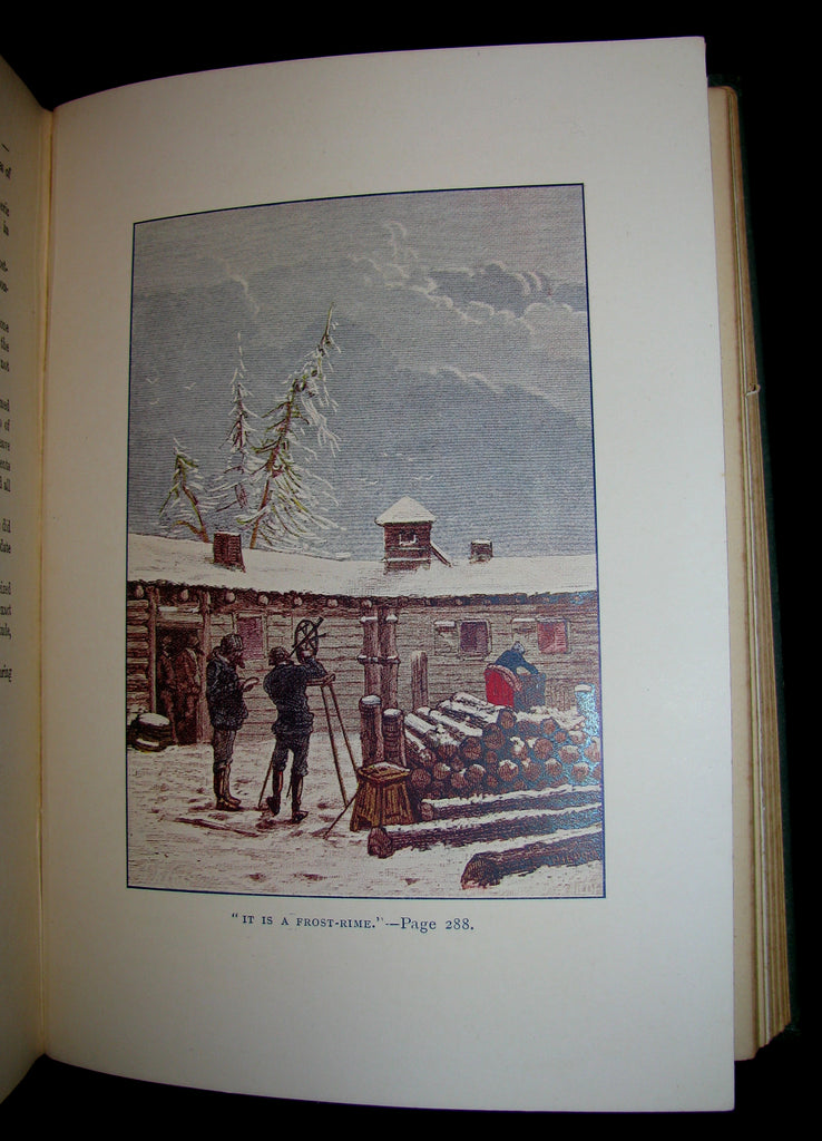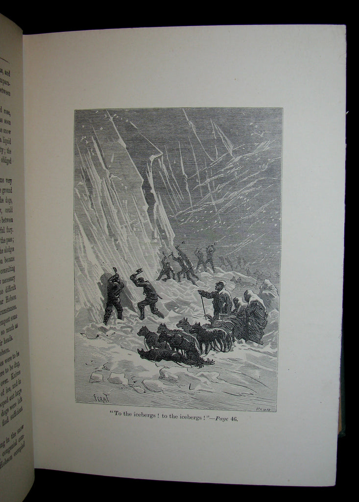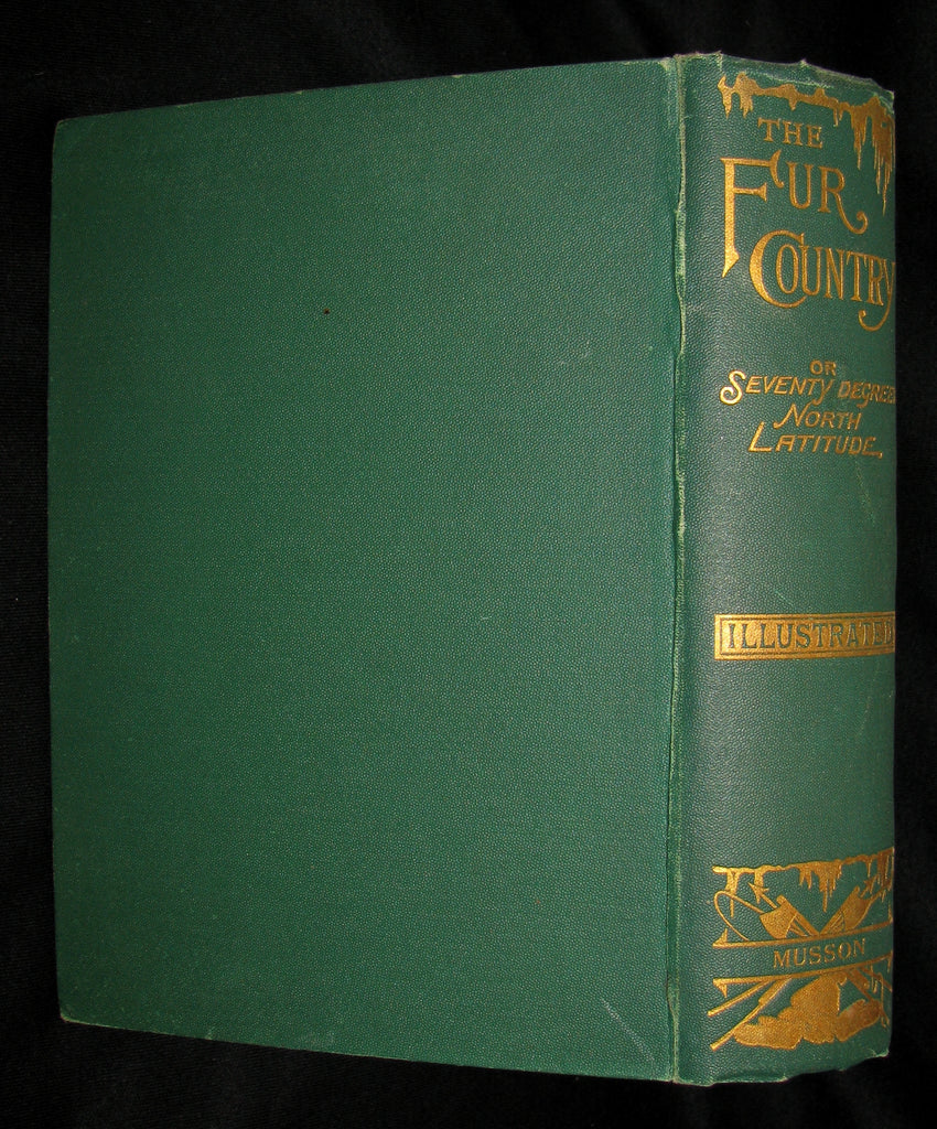 The book : Rare and attractive edition of The Fur Country (French: Le Pays des fourrures) -- an adventure novel by Jules Verne in The Extraordinary Voyages series, first published in 1873. The novel was serialized in Magasin d’Éducation et de Récréation from September 1872 to December 1873. The two-volume first original French edition and the first illustrated large-format edition were published in 1873. The first English translation by N. D’Anvers (pseudonym of Mrs. Arthur (Nancy) Bell) was also published in 1873.