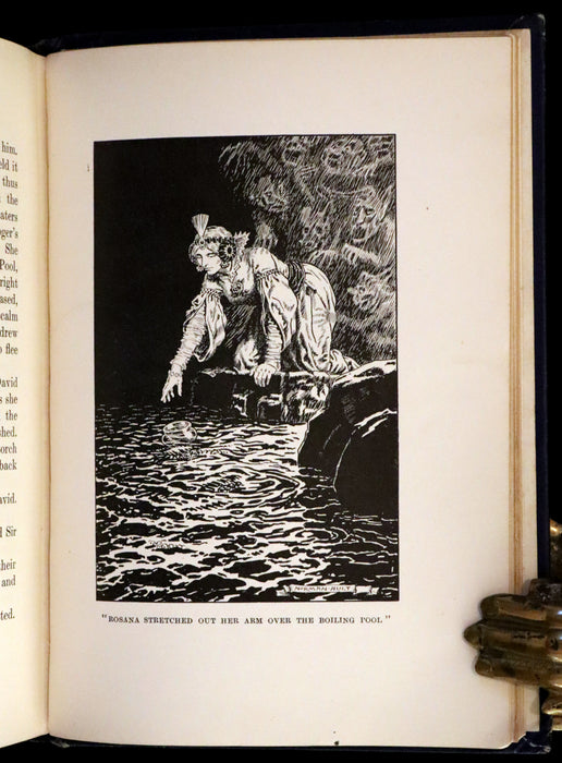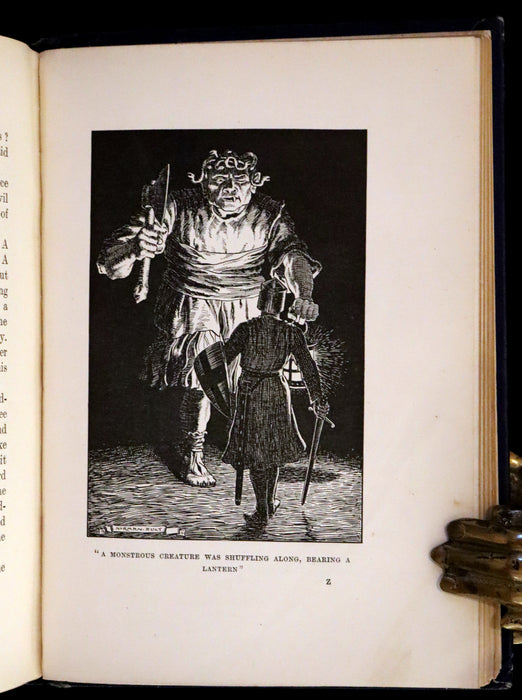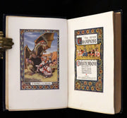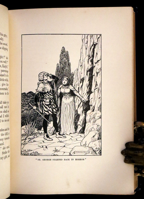Binding: Attractive and very good original beautifully decorated blue cloth binding with gilt and color-stamped illustration of a knight slaying a dragon. The spine also features elaborate gilt titling and heraldic symbols (hinges fine, overall slightly worn and scuffed - as shown, corner lightly bumped - as shown) under a protective removable mylar cover. Upper edge gilt.