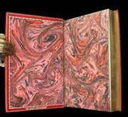Binding: Attractive and very good red full morocco leather binding with raised bands, gilt title and decoration to spine (hinges tight but scuffed and darkened - as shown, overall slightly worn and scuffed - as shown) under a protective removable mylar cover. A very nice deluxe binding by Sangosrki & Sutcliffe binders for Marshall Field and Company!