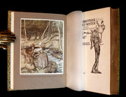 The book: Beautiful and attractive First illustrated Edition by Arthur Rackham of Brothers Grimm's Stories. This is one of the few books illustrated by Rackham from which it would be possible to select any single-color picture in order to demonstrate Rackham's art at its finest. A highly collectible Rackham edition in a wonderful Bayntun binding!