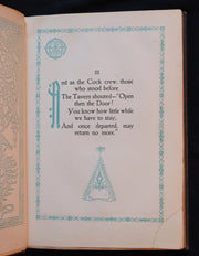 The book: Beautiful edition in a scarce green variant of the original Publisher's Deluxe binding of The Rubáiyát of Omar Khayyám Rendered in English Verse by Edward Fitzgerald with illustrations by Willy Pogany.