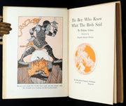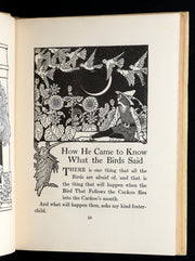 The book: First Edition. A lyrical and dreamlike collection of mythic and folkloric tales, The Boy Who Knew What the Birds Said captures Padraic Colum’s gift for crafting poetic narratives that evoke the rhythms of oral storytelling. With its themes of nature, transformation, and the inner life of children, the book stands as one of Colum’s most enchanting contributions to early 20th-century children’s literature. The synergy between Colum's narrative and Dugald Stewart Walker’s elegant and imaginative Art Nouveau illustrations makes this edition especially prized among collectors.