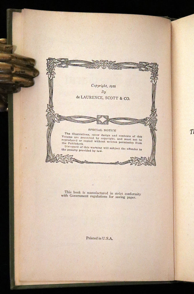 Publisher: Chicago, Ill. The de Laurence Company, 1918. First edition.