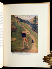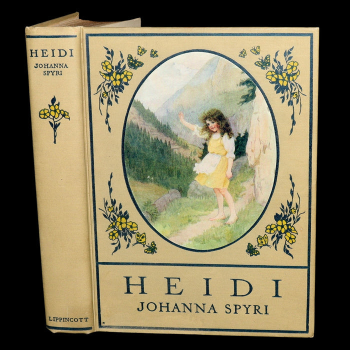 Binding: Attractive and near fine original decorative pictorial cloth binding, illustrated in color on the front board with stylized floral motifs and a charming image of Heidi in a mountain setting. Gilt title on spine (hinges fine, overall slightly scuffed - as shown) under a protective removable mylar cover. Upper edge gilt.