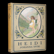 Binding: Attractive and near fine original full-cloth binding with an oval pictorial onlay of Heidi surrounded by decorative floral and butterfly motifs in blue and yellow (hinges fine, overall slightly scuffed - as shown) under a protective removable mylar cover. Top edge gilt. A rare find in such a nice condition!