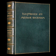 The book: Rare, superbly bound, and attractive First edition of Irish Fairy Tales. A classic collection of Irish folklore, beautifully illustrated by Arthur Rackham. This edition showcases Rackham’s unique artistic style, blending mystical elements of Irish tales with intricate line work and soft color tones. The tales reflect the depth and richness of Irish mythology, bringing characters like Tuan mac Cairill and Fionn to life. Each story is filled with vibrant descriptions and vivid imagery, complemented by Rackham's stunning illustrations. This is a first edition, highly sought after by collectors of Rackham’s work.