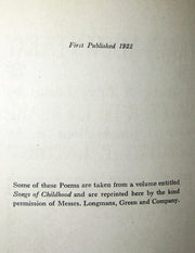 The book : Rare and attractive first edition of those illustrated Fairy Poems by Dorothy Pulis Lathrop. A wonderful selection of 55 of De La Mare's poems for children, beautifully illustrated, under the categories of 'Fairy Poems', 'Witches and Witchcraft' and 'The World of Dream'.