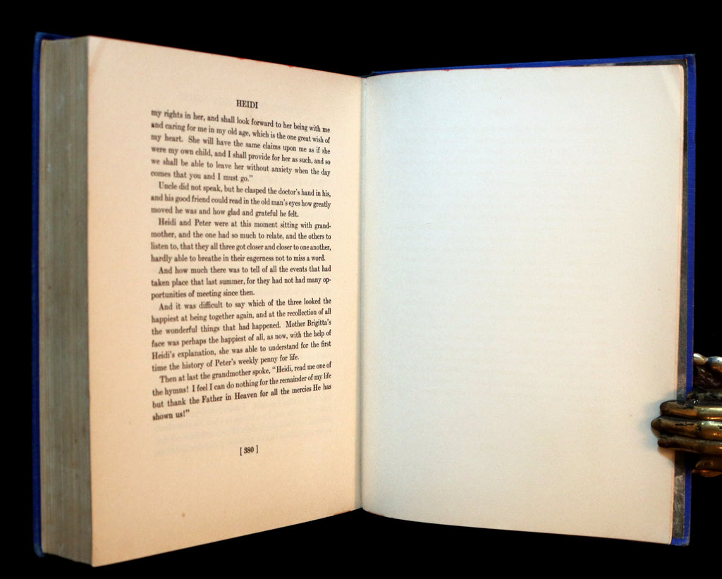The book: Rare and attractive first illustrated edition (second issue; according to Nudelman A58) by Jessie Willcox Smith of Heidi - a novel about the events in the life of a young girl in her paternal grandfather's care in the Swiss Alps.