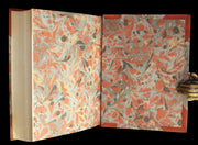 Binding: Attractive and near fine binding elegantly bound in bronzed brown half morocco leather binding over beautifully marbled cloth sides (hinges fine) under a protective removable mylar cover. A beautiful binding!
