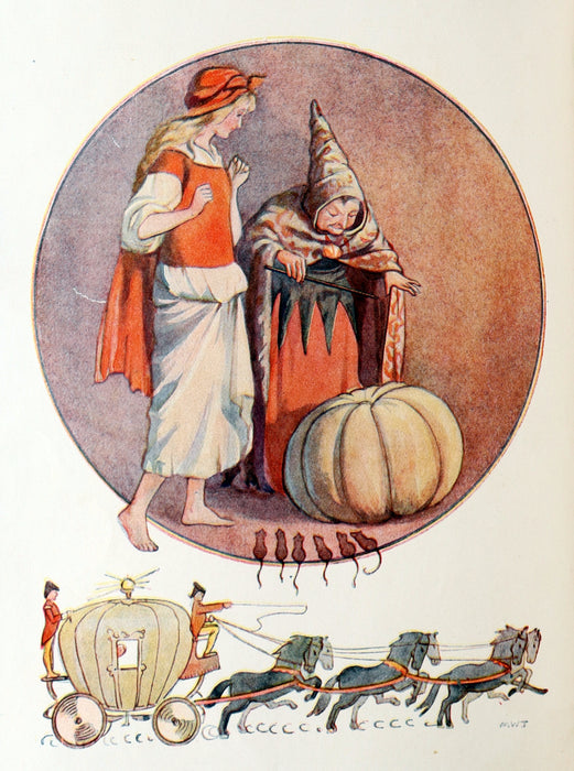 Illustrations: Lavishly illustrated with 48 full-page color plates by Margaret W. Tarrant, including a frontispiece (Cinderella and the Fairy Godmother). The illustrations capture key fairy tale moments with ethereal delicacy and expressive charm. Each plate retains excellent color vibrancy. Highlights include images from Little Red Riding Hood, Jack and the Beanstalk, Puss in Boots, and Beauty and the Beast.