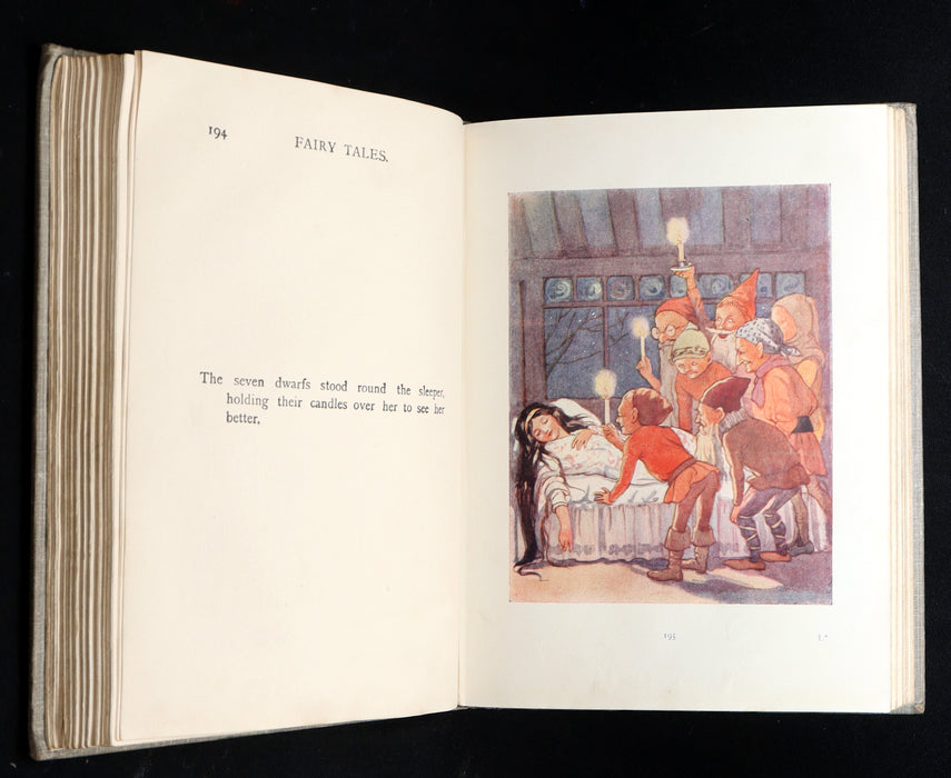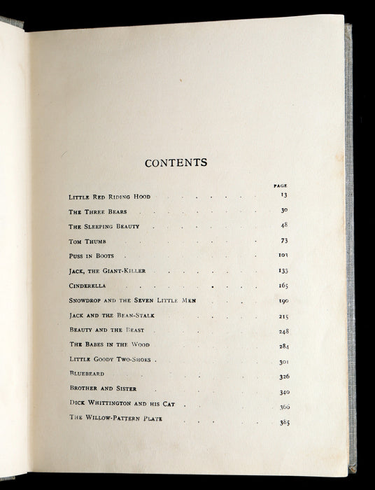 The book: A delightful and expansive fairy tale anthology featuring timeless stories such as Cinderella, Jack and the Beanstalk, Bluebeard, Snowdrop and the Seven Little Men, and many more. This edition is notable for the breadth of tales it includes and for its generous suite of color illustrations by Margaret W. Tarrant. Tarrant’s illustrations, with their soft palettes and innocent warmth, elevate the traditional narratives into dreamlike, nostalgic worlds that capture the imagination of children and collectors alike. A standout volume among early 20th-century fairy tale publications.