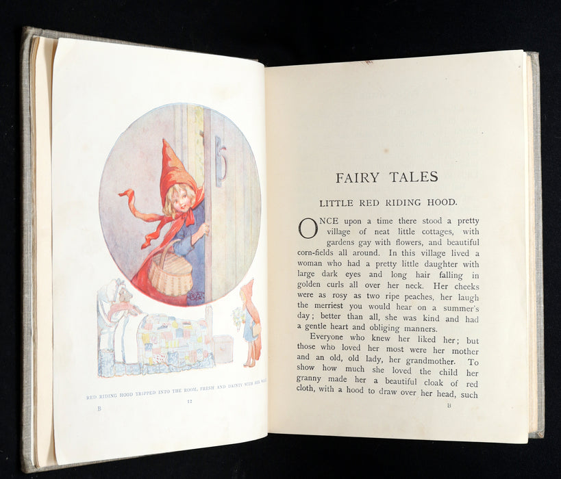 Binding: Attractive and very good publisher’s original grey cloth binding with decorative black borders and titling to spine and front board. A full-color pictorial onlay of Little Red Riding Hood adorns the front cover (hinges fine, overall slightly worn and scuffed - as shown) under a protective removable mylar cover. A rare find in any condition!