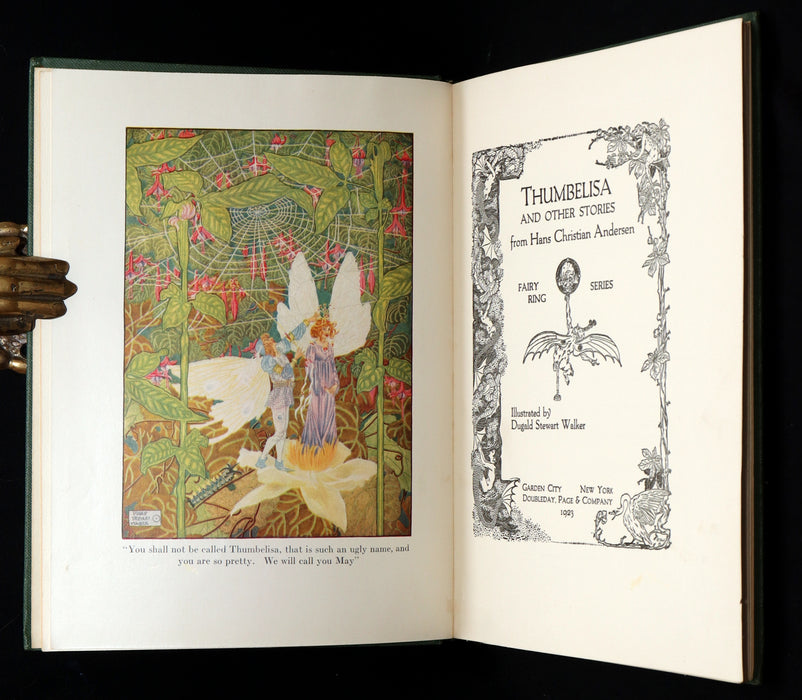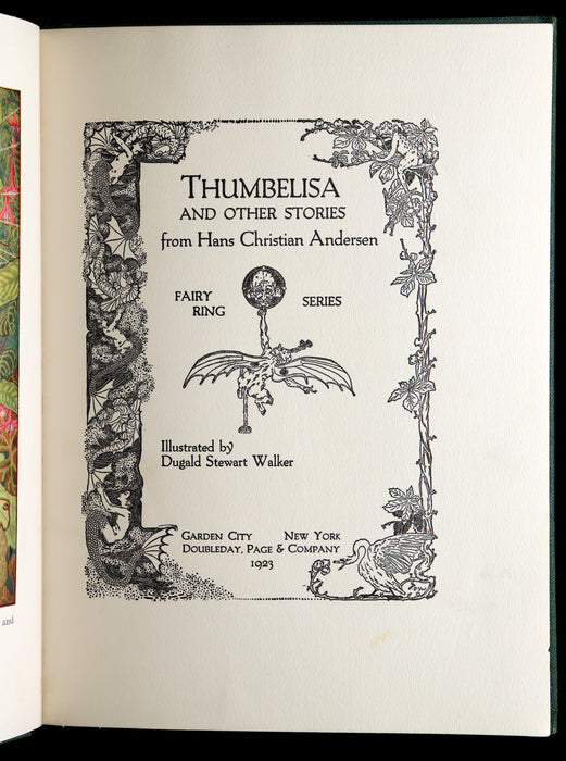 The book: A magnificent illustrated edition of Thumbelisa and Other Stories, featuring the delicate, dreamlike illustrations of Dugald Stewart Walker. This volume, part of the Fairy Ring Series, brings together some of Andersen's most cherished fairy tales, rendered in a highly artistic presentation. Walker’s visionary style, inspired by Art Nouveau and fantasy illustration, makes this book a true collector’s item.