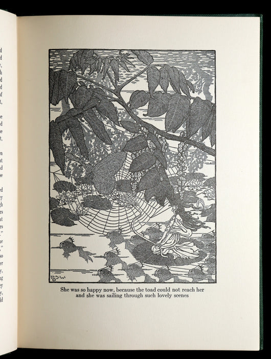 The illustrator: Dugald Stewart Walker (1883–1937) was an American illustrator known for his exquisitely detailed, fairy-tale-inspired artwork. His illustrations often featured intricate line work and ethereal compositions, making him one of the most distinctive illustrators of the early 20th century. His work in Thumbelisa and Other Stories showcases his mastery of fantasy illustration, bringing Andersen’s timeless tales to life with a sense of wonder and enchantment.