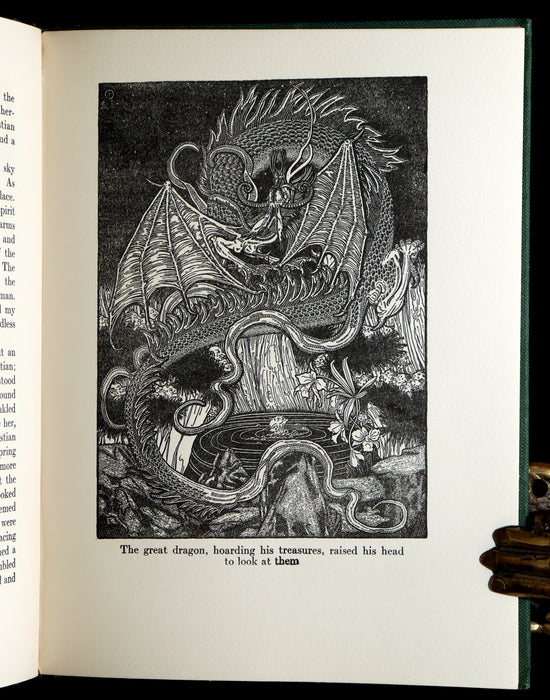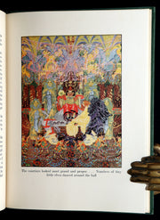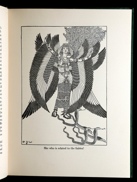 Binding: Attractive and near fine beautiful publisher’s original green cloth binding with gilt lettering and an elaborate pictorial onlay featuring a vibrant illustration by Dugald Stewart Walker. The spine is also elegantly lettered in gilt (hinges fine, overall slightly scuffed - as shown) under a protective removable mylar cover.