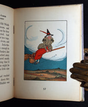 The book: Published as part of the charming Altemus’ Peter Rabbit Series, this delightful miniature volume retells adventures inspired by the beloved Peter Rabbit tradition for young readers. Written by Linda Stevens Almond and illustrated by J. L. G., the story introduces Peter and the Little White Rabbit as they encounter whimsical characters including the familiar Old Witch Woman, whose broomstick adventures add a touch of fantasy to the tale. Produced by the Philadelphia publisher Henry Altemus—well known for its beautifully designed juvenile series in the early twentieth century—these small-format books were intended as attractive bedside stories for children. Their colorful illustrations, compact size, and decorative bindings made them especially popular gifts, and complete copies retaining their dust jackets have become increasingly collectible today.