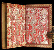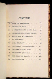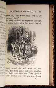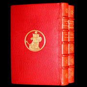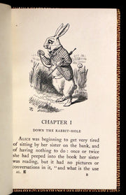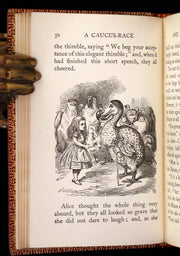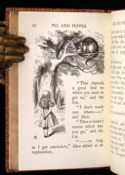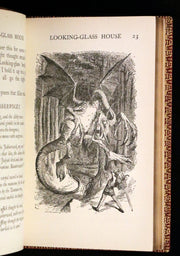 Binding: Attractive and near fine binding by Zaehnsdorf in sumptuous full scarlet morocco leather with 5 raised bands, gilt titles to spine and decoration to compartments, and gilt vignette roundels to boards featuring Alice and the Cheshire Cat, and The Red and White Queens respectively (hinges fine, spine very slightly sunned - as shown) under a protective removable mylar cover. All edges gilt.