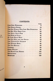 Publisher: New York, Boni and Liveright Inc., 1924. Second edition. The versions of the first four tales in this volume are by Lafcadio Hearn ("Chin-chin kobakama," "The goblin-spider," "The old woman who lost her dumpling," and "The boy who drew cats"). The others are by Grace James, Professor Basil Hall Chamberlain and others.
