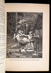 The book: Rare and attractive First edition illustrated by Francis Donkin Bedford of At the Back of the North Wind -- a children's book written by Scottish author George MacDonald. It was serialized in the children's magazine Good Words for the Young beginning in 1868 and was published in book form in 1871. It is a fantasy centered on a boy named Diamond and his adventures with the North Wind. Diamond travels together with the mysterious Lady North Wind through the nights. The book includes the fairy tale Little Daylight, which has been pulled out as an independent work, or separately, added to other collections of his fairy tales.