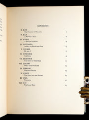 The book: This First Edition of Memories and a Garden is an intimate and poetic memoir, privately printed after the author’s death in 1923. Through a calendar of reflective essays, Emily Eldredge Saville conjures the joys and sorrows of her New England girlhood, her connection to her ancestral home, and the cyclical rhythms of nature and memory. A deeply nostalgic and beautifully composed work, it is enhanced by the delicate presence of Jessie Willcox Smith’s fronstispiece.