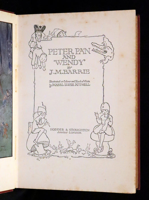 The book: Peter Pan and Wendy is a beloved classic that immortalizes the adventures of Peter Pan, Wendy, and the Lost Boys in Neverland. This edition is particularly sought after due the scarcity of his binding variant and to the enchanting illustrations by Mabel Lucie Attwell, whose work captures the magic and innocence of the story. Attwell's illustrations bring the tale to life, making this book a treasure for collectors and admirers of children's literature.