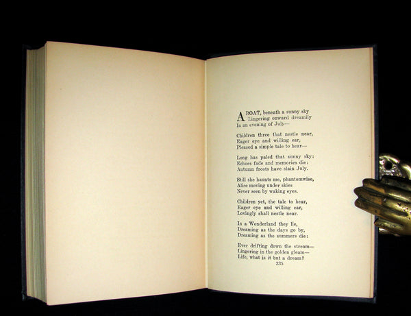 The author: Charles Lutwidge Dodgson (27 January 1832 – 14 January 1898), better known by his pen name Lewis Carroll, was an English writer, mathematician, logician, Anglican deacon, and photographer. His most famous writings are Alice's Adventures in Wonderland, its sequel Through the Looking-Glass, which includes the poem "Jabberwocky", and the poem The Hunting of the Snark – all examples of the genre of literary nonsense. He is noted for his facility at word play, logic and fantasy. There are societies in many parts of the world dedicated to the enjoyment and promotion of his works and the investigation of his life.
