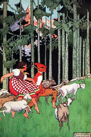 The illustrator: Edna Cooke Shoemaker (1889–1975) was an American artist and illustrator. Born in Philadelphia, she graduated from the Philadelphia High School for Girls in 1908 and was a student at the Philadelphia Academy of Art. She illustrated magazine advertisements, magazine covers including Ladies Home Journal (April 1920, June 1920, and August 1920); and Etude (October 1928); and children's books including Mother Goose, Heidi, Hans Brinker, Heidi,Tommy Tip Toe, Stories of Mrs. Moleworth, Stories by Juliana Horatia Ewing, and East o’ the Sun, West o’ the Moon.