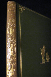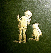 The book : Rare and Attractive First UK edition in Publisher's de luxe binding of full green leather decorated in gilt (there was a choice of three colors and the green is of course the closest match for the color of the normal cloth issue) of Winnie-the-Pooh, also called Pooh Bear, - a fictional anthropomorphic bear created by A. A. Milne.