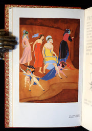 The book: Attractive and wonderfully bound first edition of these Balzac's tales illustrated by Jean de Bosschere. Bosschere was renowned for his lavish and erotic color plates, with their stunning use of saturated plates. His style complements the themes of the droll tales, or the 'contes drolatiques'. Les Cent Contes drolatiques is a collection of tales published by Honoré de Balzac in Paris from 1832 to 1837. They constitute a reminiscence of Boccaccio's Décaméron, claimed by the author himself, with which several academics made the connection.