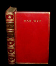 The book : A very attractive first illustrated edition curiosa of Don Juan - the famous satiric poem by Lord Byron, based on the legend of Don Juan, which Byron reverses, portraying Juan not as a womaniser but as someone easily seduced by women. It is a variation on the epic form. Byron himself called it an "Epic Satire" (Don Juan, c. xiv, st. 99). Byron completed 16 cantos, leaving an unfinished 17th canto before his death in 1824. Byron claimed that he had no ideas in his mind as to what would happen in subsequent cantos as he wrote his work. This copy in a beautiful binding by Sangorski and Sutcliffe.