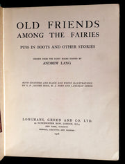 The book: Attractive and very nice First edition of OLD FRIENDS AMONG THE FAIRIES. Puss in Boots and Other Stories (Cinderella, Jack and the Beanstalk, Hansel and Grettel, etc.) chosen from the Fairy Books of Andrew Lang.
