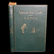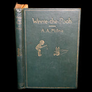 The book: Rare and Nice First American edition of Winnie-the-Pooh, also called Pooh Bear, - a fictional anthropomorphic bear created by A. A. Milne. The first collection of stories about the character was the book Winnie-the-Pooh (1926), and this was followed by The House at Pooh Corner (1928). Milne also included a poem about the bear in the children’s verse book When We Were Very Young (1924) and many more in Now We Are Six (1927). All four volumes were illustrated by E. H. Shepard.(Hyphens in the character's name were dropped by Disney when the company adapted the Pooh stories into a series of features that became one of its most successful franchises.)The Pooh stories have been translated into many languages, including Alexander Lenard's Latin translation, Winnie ille Pu, which was first published in 1958, and, in 1960, became the only Latin book ever to have been featured on The New York Times Best Seller list. In popular film adaptations, Pooh Bear has been voiced by actors Sterling Holloway, Hal Smith, and Jim Cummings in English and Yevgeny Leonov in Russian.