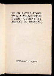 The book: Attractive, rare, and very nice First American edition of Winnie-the-Pooh, also called Pooh Bear, - a fictional anthropomorphic bear created by A. A. Milne. "Winnie-the-Pooh" is not just a story but a cherished memory for many. This particular First edition, with its rich history and unique characteristics, is a true gem for any collector or aficionado of classic children's literature.