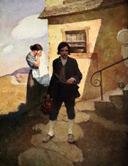 The illustrator: Newell Convers Wyeth (October 22, 1882 – October 19, 1945), known as N. C. Wyeth, was an American painter and illustrator. He was the pupil of Howard Pyle and became one of America's most well-known illustrators. Wyeth created more than 3,000 paintings and illustrated 112 books — 25 of them for Scribner's, the Scribner Classics, which is the body of work for which he is best known. The first of these, Treasure Island, was one of his masterpieces and the proceeds paid for his studio. Wyeth was a realist painter at a time when the camera and photography began to compete with his craft. Sometimes seen as melodramatic, his illustrations were designed to be understood quickly. Wyeth, who was both a painter and an illustrator, understood the difference, and said in 1908, "Painting and illustration cannot be mixed—one cannot merge from one into the other."