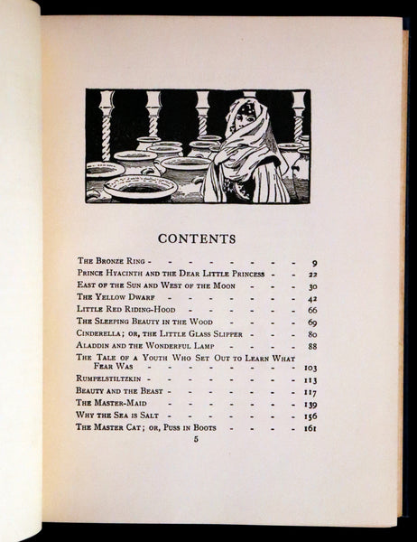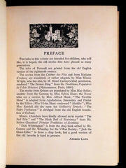 The book: Scarce First illustrated Edition by Manning de V. Lee of the Blue Fairy Book by Andrew Lang. The book assembled a wide range of tales, with seven from the Brothers Grimm, five from Madame d'Aulnoy, three from the Arabian Nights, and four Norwegian fairytales, among other sources. The Blue Fairy Book was the first volume in the series, and so it contains some of the best-known tales, taken from a variety of sources.