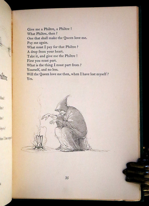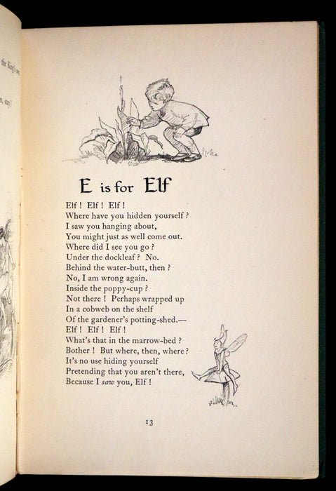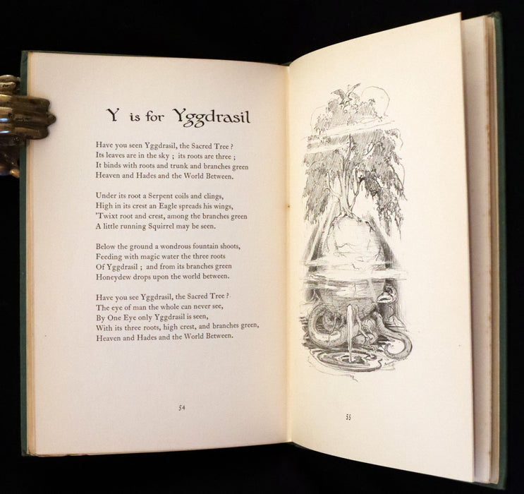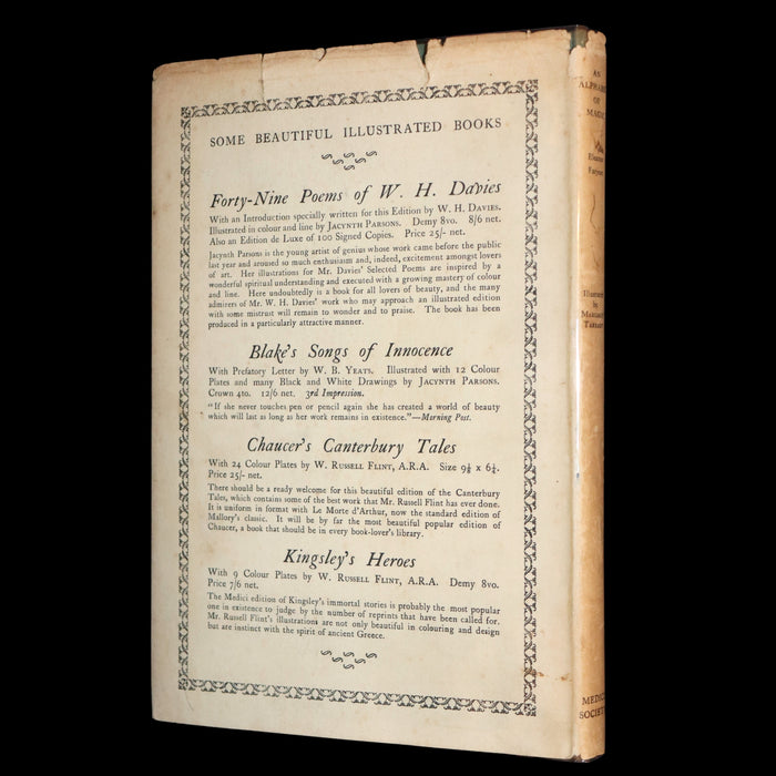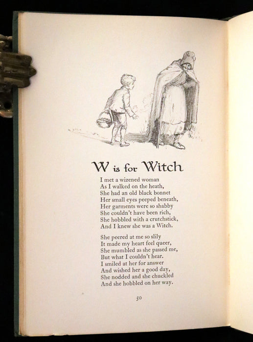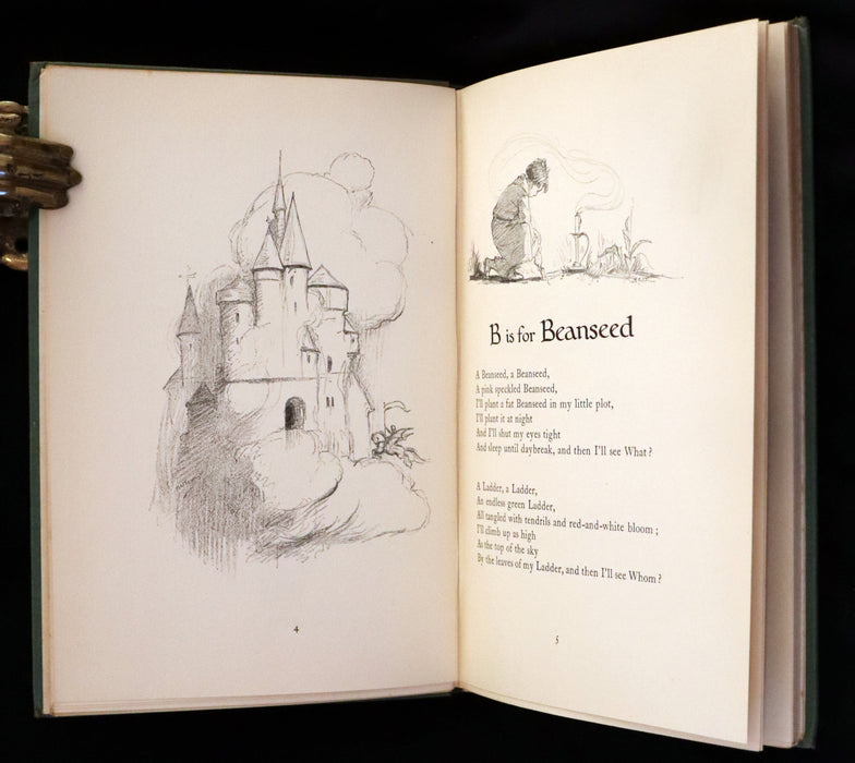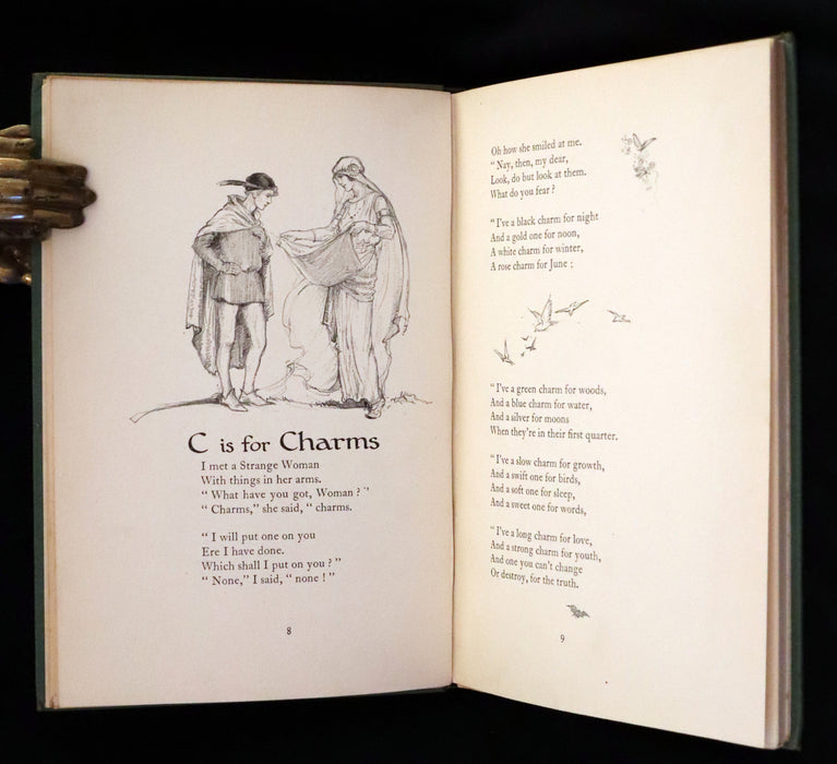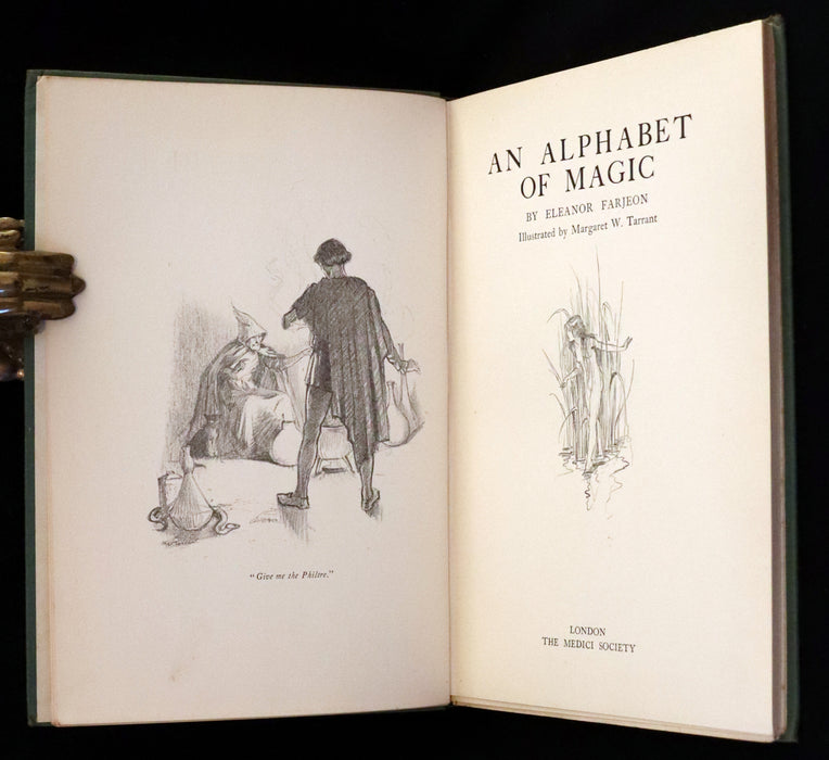 The illustrator: Margaret W. Tarrant (1888–1959) was a renowned British artist and book illustrator, celebrated for her ethereal depictions of fairy tales, nursery rhymes, and religious themes. Her delicate and detailed illustrations, infused with a sense of enchantment, made her a favorite among collectors of illustrated children's books. In An Alphabet of Magic, her finely rendered black-and-white drawings add an extra layer of whimsy to Farjeon’s poetic verses.